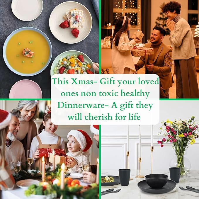 - ๐พ BPA & Toxin-free: Our chemical-free dinner sets for 6 are made from natural materials. A safe alternative to plastic dinnerware set. Make a positive impact on home environment by choosing our green & clean kitchenware