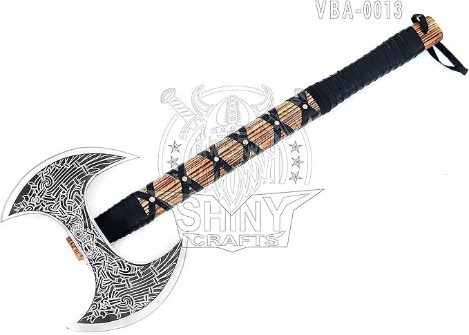 - ✅SHINY CRAFTS Branded Top rated 27'' to 40" Long VIKING AXE SPECIFICATIONS - High Quality 1095 Carbon steel semi sharp blade width 7'' inches, length 8'' inches and Rosewood Handle 27'' with Prefect Grip and Balanced Axe.