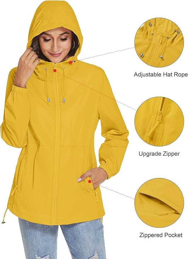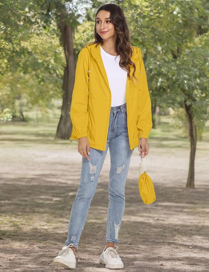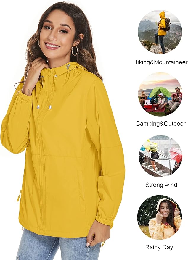 - Stay Dry and Comfortable: Women's waterproof windbreaker with elastic cuffs and a drawstring hem, fits snugly against your body to keep you dry. These windproof and sun-proof jackets keep you safe from the elements while being lightweight and quick-drying, so you can stay comfortable even in wet conditions. It's stylish enough to wear as a light jacket year-round.