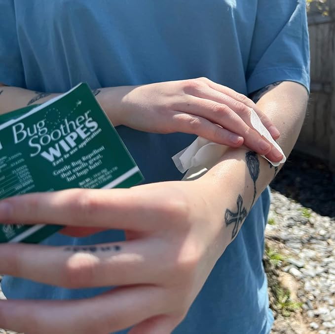 - Proudly made in the USA, Bug Soother has a light lemongrass and vanilla scent. Smells good to humans — but bugs hate it! Wipes are one-time use, but can be used for the entire body!