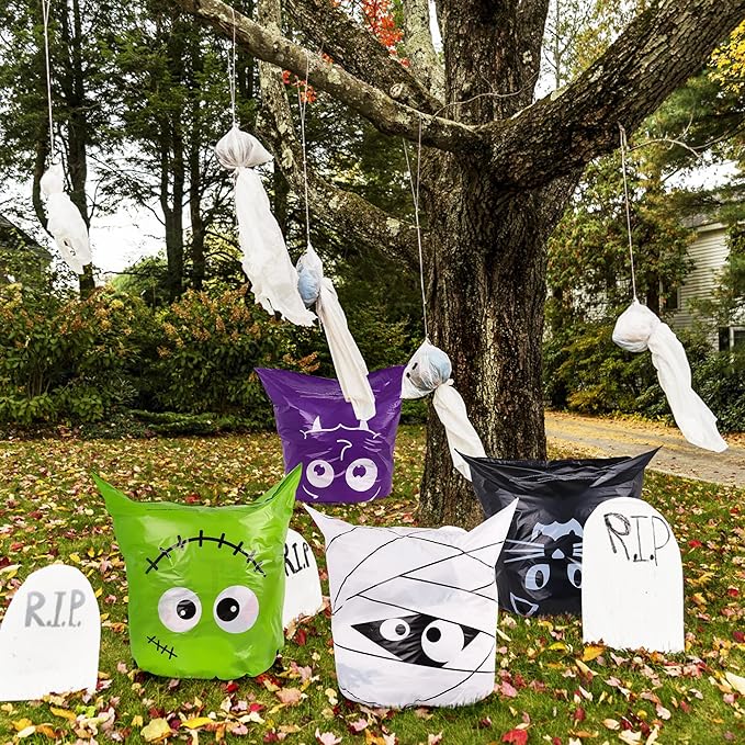 - Pumpkin Lawn Bag Fun Design: These eye catching Halloween pumpkin decoration bags come in some different Halloween pattern designs include pumpkin smile faces, ghost faces, black cat, mummy and more, festive and fun, which adds a strong Halloween festive atmosphere, Charm to your halloween lawn decoration ideas.