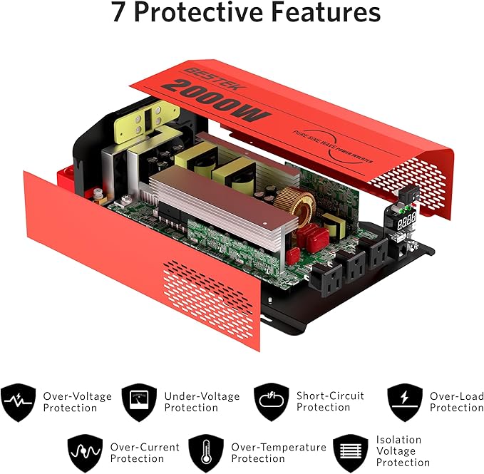 - [Protects and extends the lifespan of electronics] - The advanced pure sine wave technology of this inverter ensures that your electronics and appliances receive high-quality AC power, protecting them from damage and extending their lifespan.
