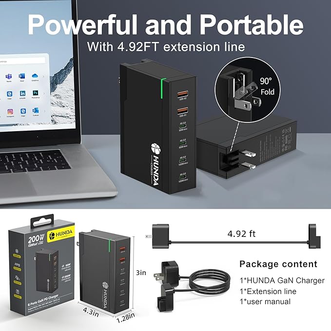 - ๐ก๏ธ[Upgrade GaN Tech] HUNDA GaN Charger build-in 2Pcs GaN chips. Powered by GaN Technology to makes our GaN Charger is faster charging, smaller but more powerful, providing comprehensive protection for your devices. The GaN chipset increases the charging efficiency up to 90%, full charge a 16-inch MacBook Pro just needs 1.5 hours.