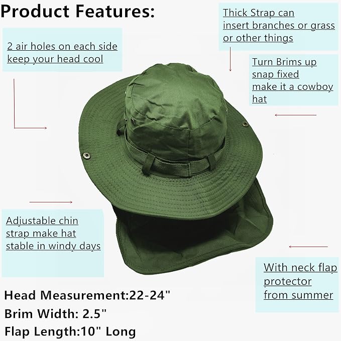 Glory Max Bucket Boonie Hat with Neck Flap Cover Sun Safari Wide Brim Fishing Garden Hiking Cap