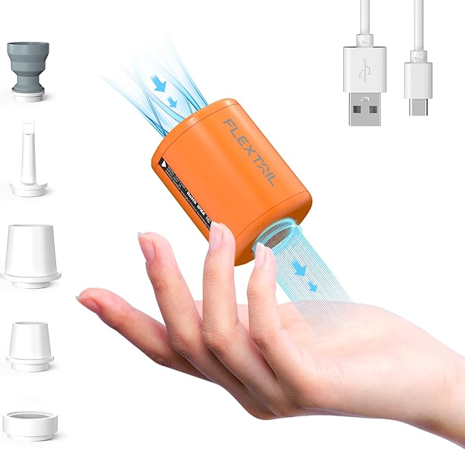 FLEXTAILGEAR Portable Air Pump - Tiny Pump 2, Electric Air Pump for Inflatables 2.8oz Battery Inflator Rechargeable Air Mattress Pump for Sleeping Pads, Pool Floats, Swimming Rings Orange