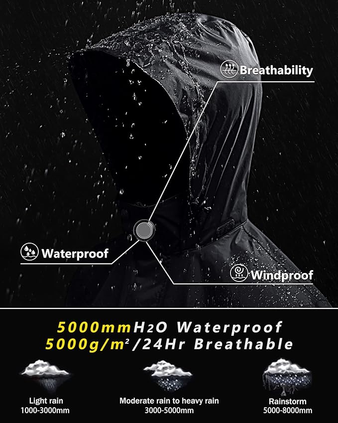 - 【Waterproof & Breathable】Our lightweight rain jacket supports high quality waterproof function, as it can keep you dry in whole day, not like others just by hours.