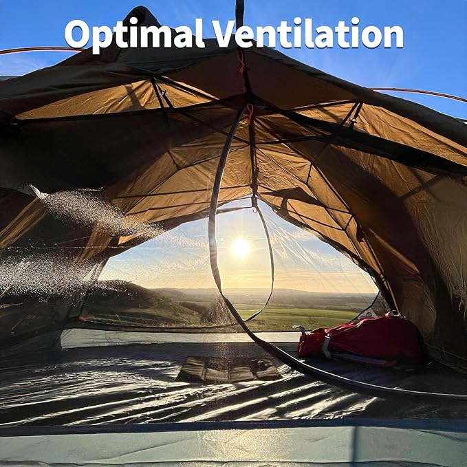 - 2 Doors with Extra Room: The double layer tent has 2 D-shaped doors with dual zipper opening, conveniently enter or walk out the tent from left or right side. 2 small mesh EAR on top and the extra room in front of door allows the air effectively flow to provide a cool ventilation.