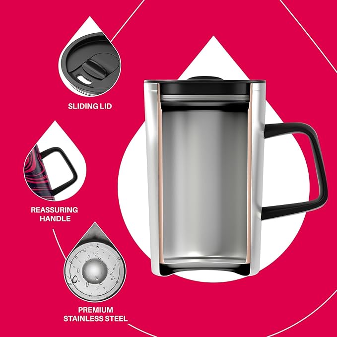 - Large Capacity - Our thermal beverage mug has an ample capacity of 16 Oz ( 470 ml ). Reduce the number of times you run to pour water.
