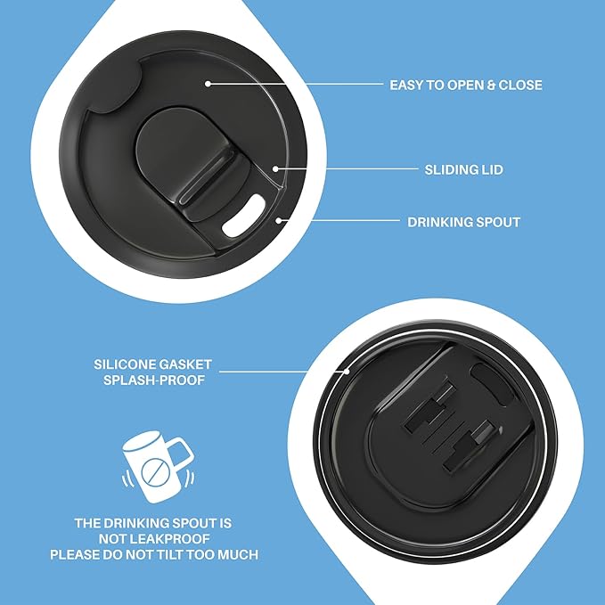 - Special Feature : Condensation Resistant, Double Wall, Non-Slip, Sliding Lid, Spill Proof