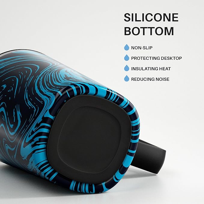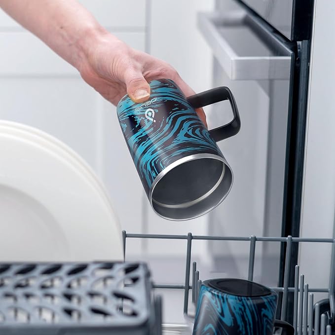 Ideus Vacuum Insulated Coffee Mug, 16oz Reusable Stainless Steel Thermal Double Walled cup with Handle and Slider Lid for Hot & Cold Beverages, BPA Free (Blue Zebra)