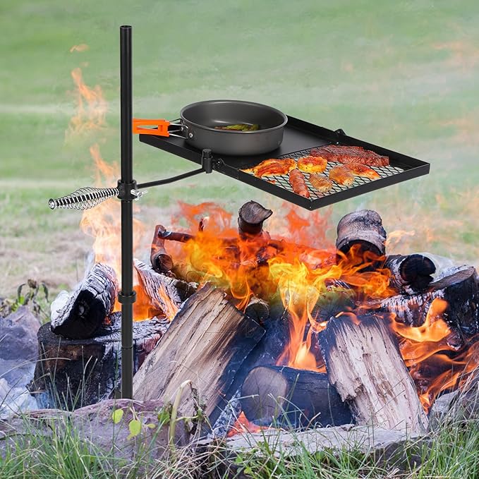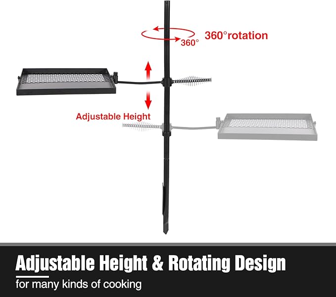 - Premium Material: The grid of swivel camping grill is made of iron with anti rust coating, which is rust-proof, durable and easy to clean after using.