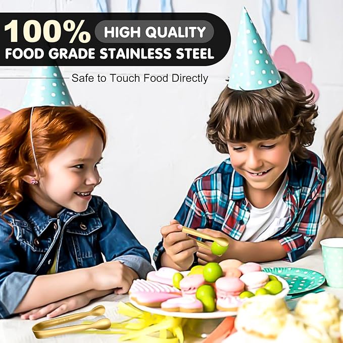 - MULTIPURPOSE-Small serving tongs is very suitable for appetizers, buffets, salads, parties, cooking, the mini tongs are very suitable for children, 4.25-inch small tongs can more easily pick up a variety of small-sized food, such as cheese, candy, vegetables, fruit, chips, popcorn, olives, etc.