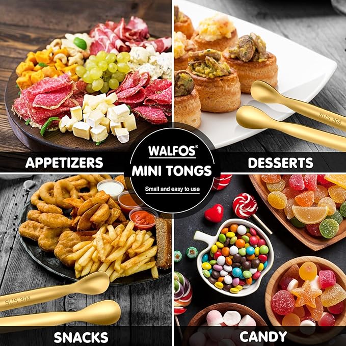 - FOOD GRADE AND STURDY STAINLESS STEEL- WALFOS Mini Tongs are made from food grade Stainless Steel , food grade approved,anti-rust, lightweight. Practical, easy to clean and dishwasher safe.