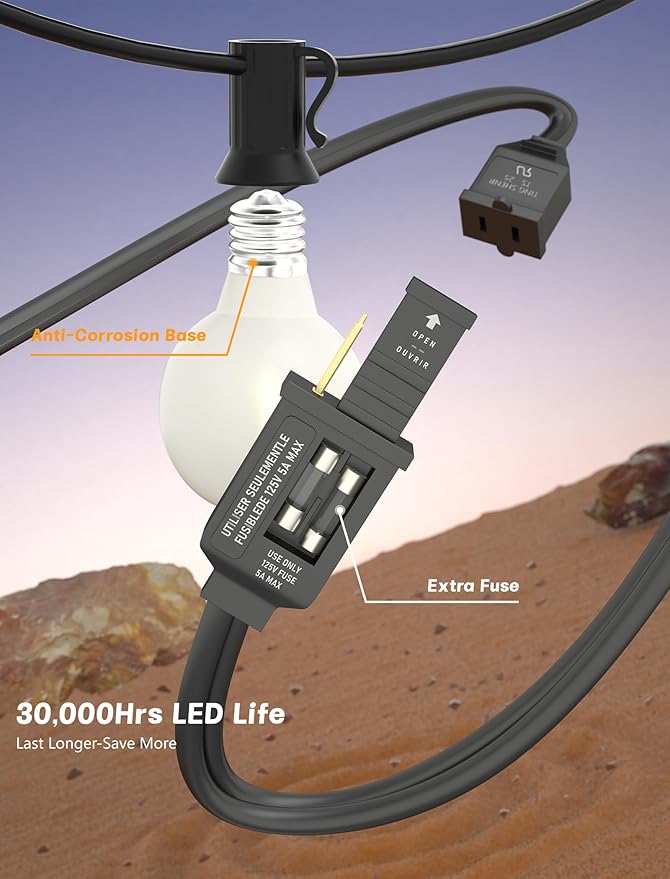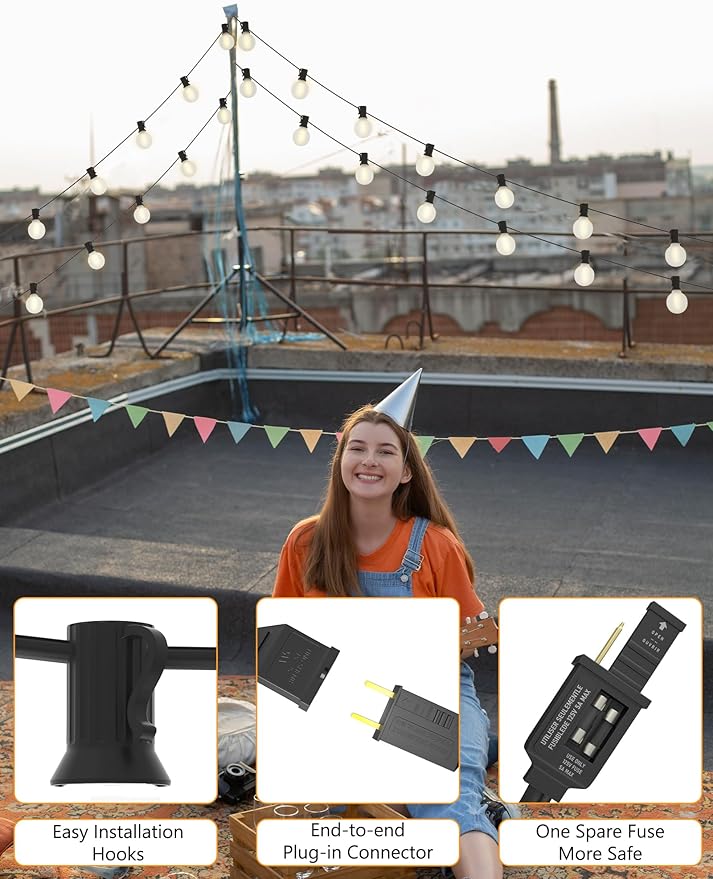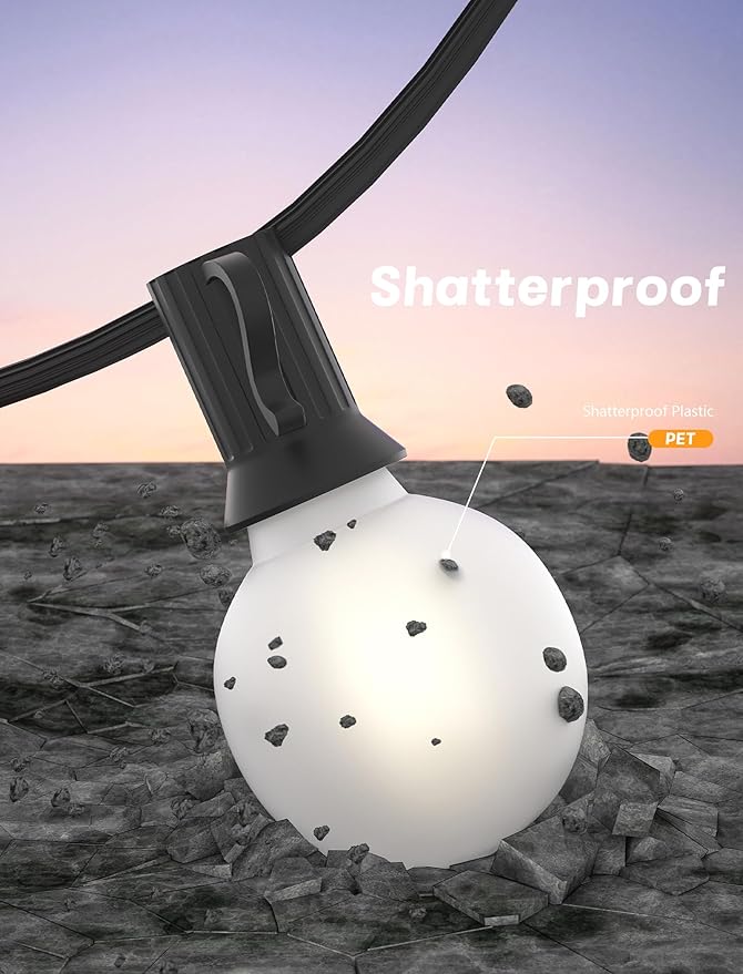 - Waterproof String Lights: With a fully sealed and waterproof design E12 base, G40 globe string lights can withstand rainy, windy, or damp climates, making sure that it is durable for long term use