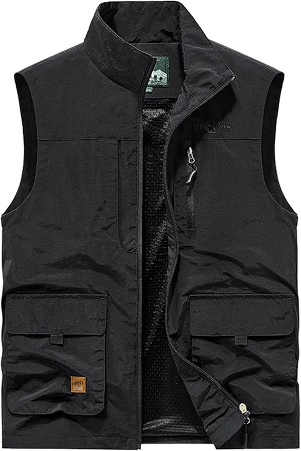• Design:Men's fishing vest ,zip up closure, multi pockets, stand collar,Mesh lining, lightweight and breathable, drawstring in the hem.