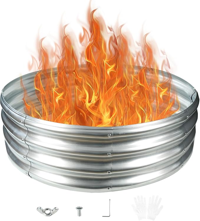 Durable Round Galvanized Steel Raised Garden Bed for Planting,Round Galvanized Steel Fire Ring/Fir Pit 36-Inch for Outdoor- 3×3×1FT,0.8MM Thick (36 ins Diameter x 12 ins high, Silver)