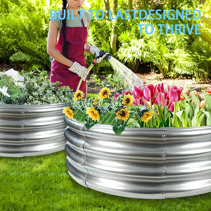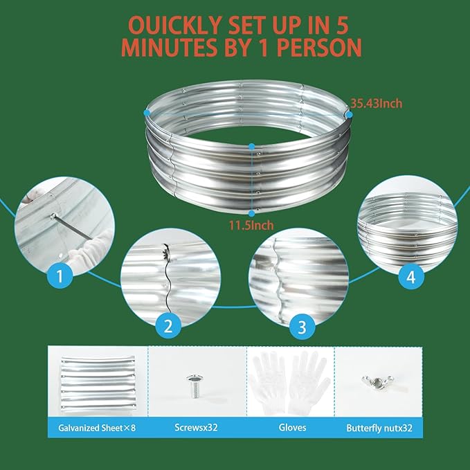 - 【STABLE】: This round raised garden bed is 36 IN Diameter,11.8 IN Tall, each is made of 0.8 MM thick Q195 galvanized metal sheet, double-layer anti-corrosion galvanizing and round structure design,it will provide a solid foundation for your plants
