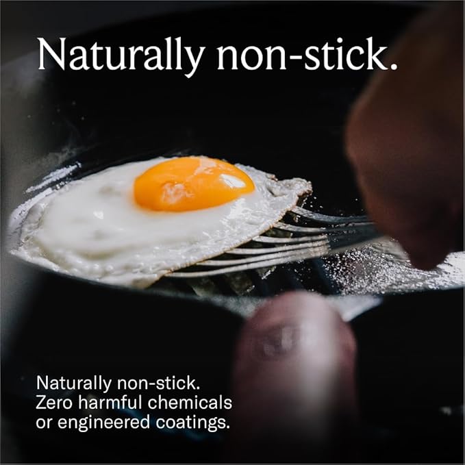 - NATURALLY NONSTICK & NONTOXIC: Field Skillets come pre-seasoned with organic grapeseed oil. As you cook your pan will develop a more seasoning, becoming more nonstick over time without any toxic chemicals. All our products are entirely PFOA & PTFE free.