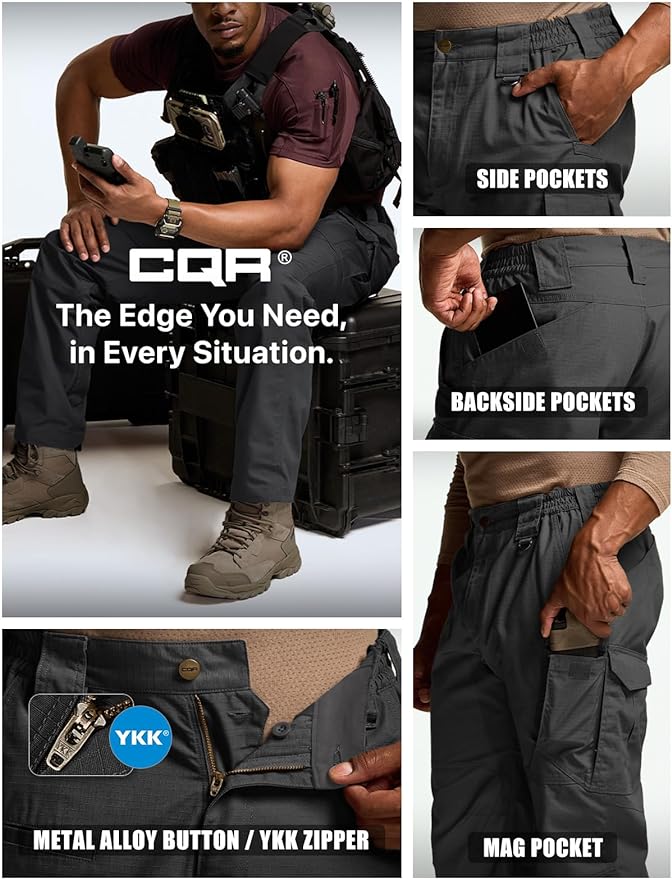 CQR Men's Tactical Pants, Water Resistant Ripstop Cargo Pants, Lightweight EDC Work Hiking Pants, Outdoor Apparel