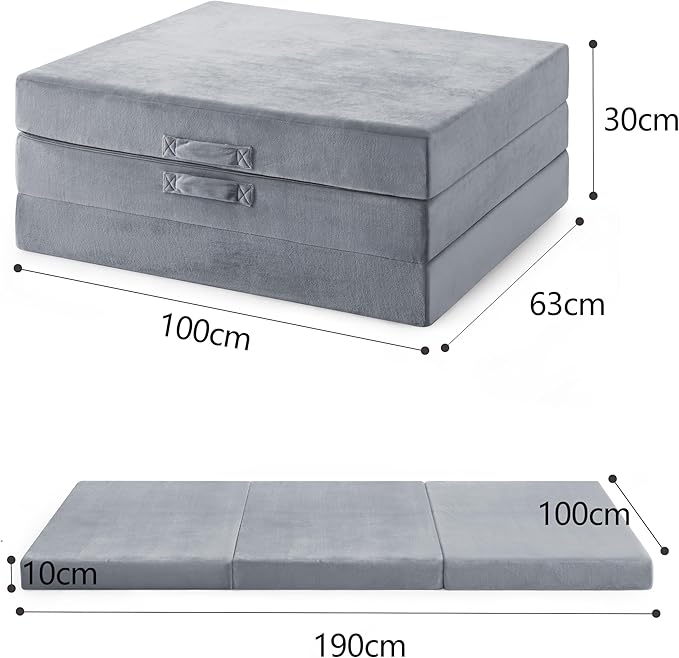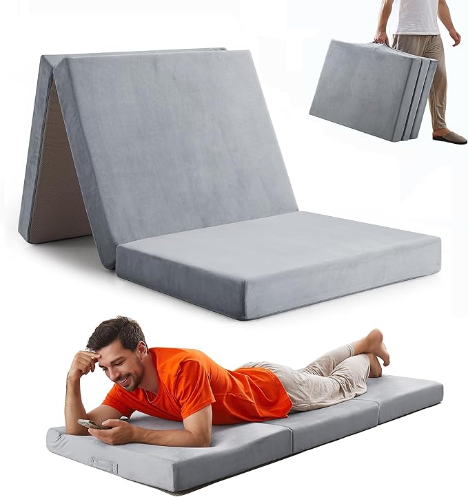 Sleeping Mats for Adults,Memory Foam Camping Folding Pad,Floor Trifold Mattress,Machine Washable Cover,Guest Bed