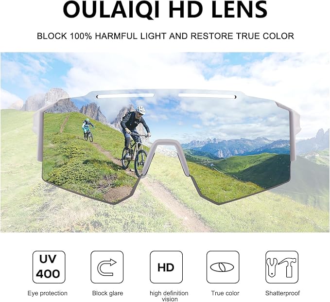 - VENTILATION SYSTEM:The OULAIQI Sports Sunglasses have an excellent ventilation system with vents on the lenses and legs; This ventilation system not only prevents the lenses from fogging up, but also makes them more breathable when worn