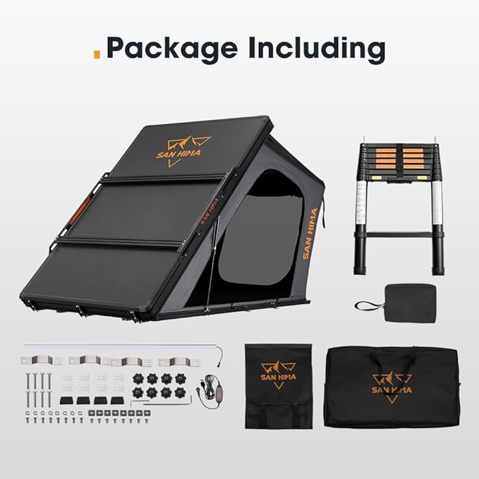- User-Friendliness: You just need 30s to set it up! Equipped with interior pockets, a shoe bag, and a tri-color LED strip that offers bright white, warm sunlight, and mosquito-repellent amber, this RTT keeps you organized and comfortable. The 7.5 ft telescopic ladder, with a load capacity of 330.7 lbs, while integrated crossbars support up to 220.5 lbs of gears. Plus, a 2-year warranty serves as an assurance for this rooftop tent.