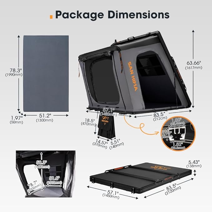 - Slimline & Lightweight: At only 163.14 lbs, our Hotham rooftop tent, shedding 8% off its predecessor’s weight, not only improves fuel efficiency but also makes handling easier, redefining what it means to travel light! With its slimline design, it packs down to a mere 5.43 in, 45% slimmer than its predecessor, it’s built for garage or undercover parking, while minimizing wind noise for a smoother drive.