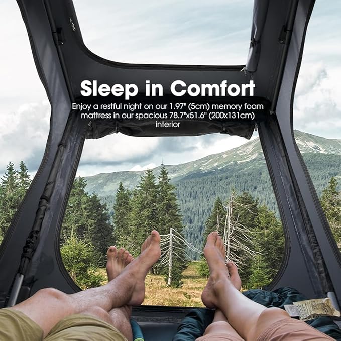 - Comfortable Interior: The Hotham (78.7 x 51.6 x 58.3 in) is a full 30% larger than the previous model, offering ample space for a family of three to enjoy. Inside, the 1.97 in thick memory foam mattress contours to your body, providing the ultimate in comfort and support, while the 1.18 in raised base ensures water resistance to keep you dry. After a night of restful sleep, you’ll wake up feeling recharged for your next adventure!