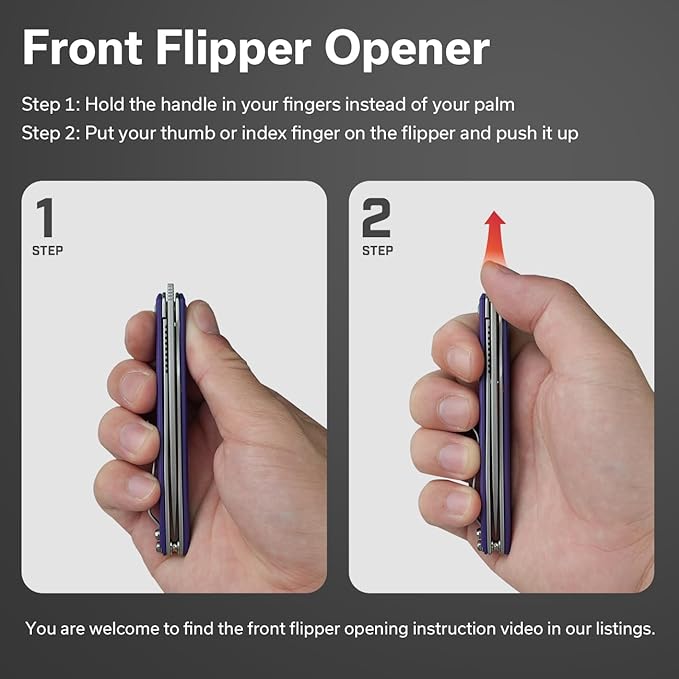 - 【 Front flipper Knife】 Small knife with front flipper enables smooth blade deployment, while the reliable lock ensures secure operation. Available in purple, black, or gray, these variations cater to individual preferences for a versatile and stylish choice.