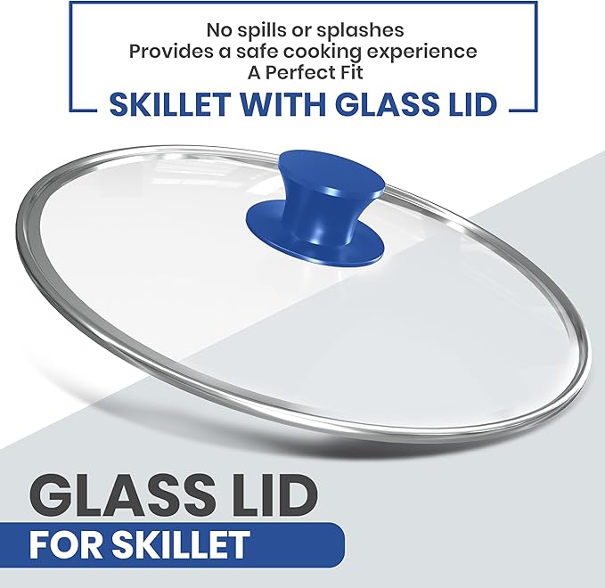 Utopia Kitchen Saute Frying Pan 12 Inch, Cast Iron Chefs Pan, Pre Seasoned Cast iron Skillet With Lid, Safe Grill Cookware for Indoor & Outdoor Use, Blue