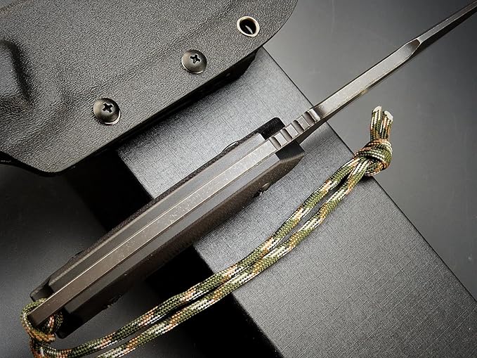- Exquisite Kydex Sheath: Safe high-strength lightweight Kydex material sheath for easy portability and everyday carry. The sheath is tight, with no rattle, but still allows quick deployment. It holds the knife well and has good retention,the retention would hold the knife for straight up vertical carry as well as horizontal / scout style. It has an adjustable clip to fit the width of your belt for a good snug grip.