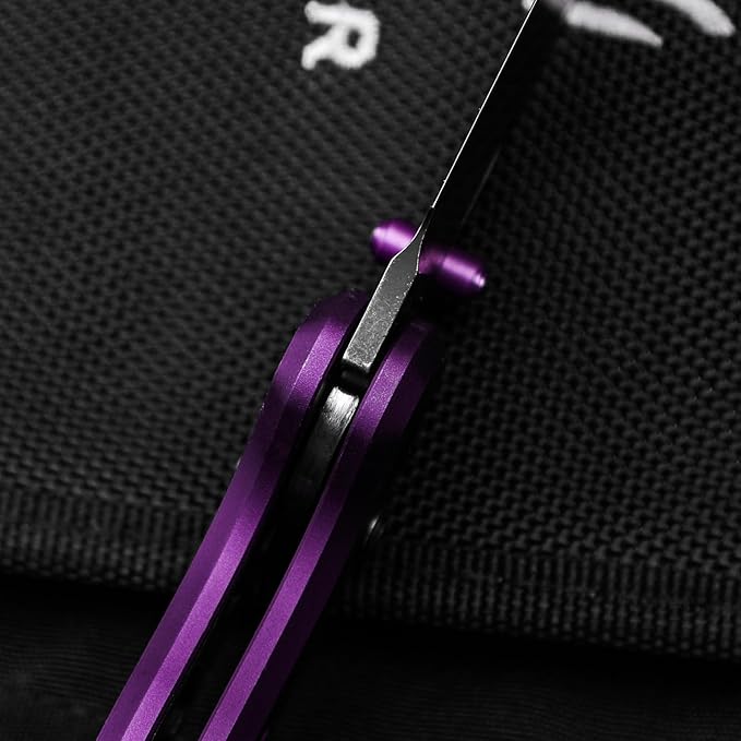 - Durable Purple Aluminum Handle: Kizer edc pocket knife features a lightweight, corrosion-resistant purple aluminum handle, anodized for durability and fade resistance; The bold color adds a unique touch and improves visibility in gear bags or low light, making it ideal for outdoor use