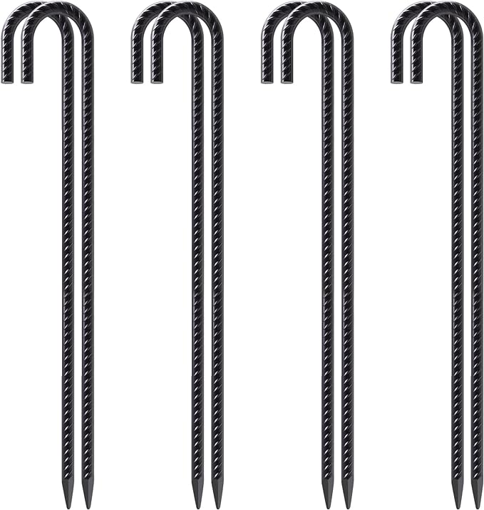 - 24 Inch Rebar Stakes--The extra long tent stakes are sold in bundles of 8 pcs, metal stakes 24 inch long and 3/8 inch diameter. The j hook distance of ground spikes is 1.5 inch, perfect for chain link fence, outdoor decorations, structures, canopies