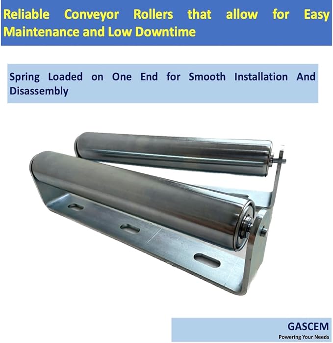 - 10"BF long roller with bracket. 100lbs load bearing metal roller. Gascem conveyor rollers made to withstand the rigors of continuous use and resist wear and tear. Roller conveyor heavy duty with anti-corrosion and rust prevention coating. They are constructed from durable materials that can handle demanding operating environment and any potential abrasion or impact. These rollers operate quietly and produce minimal vibrations ensuring smooth and efficient operation.