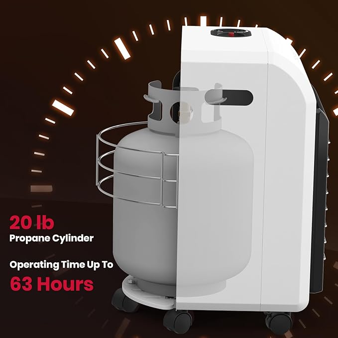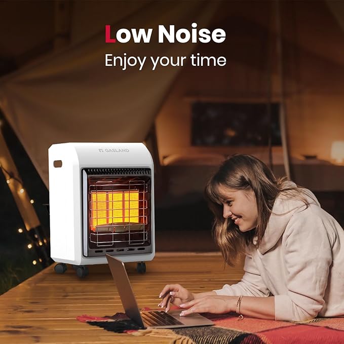 - ☀【Mobile & Space Save Design】he Gasland portable propane heater features a convenient, mobile, and space-saving design intended for use in ventilated garages, offices, and workshops. Move this heater effortlessly from room to room, thanks to the built-in rolling wheels and Easy-Carry handle. The tank is housed inside the cabinet, keeping it out of sight, which enhances the heater's aesthetic appeal.