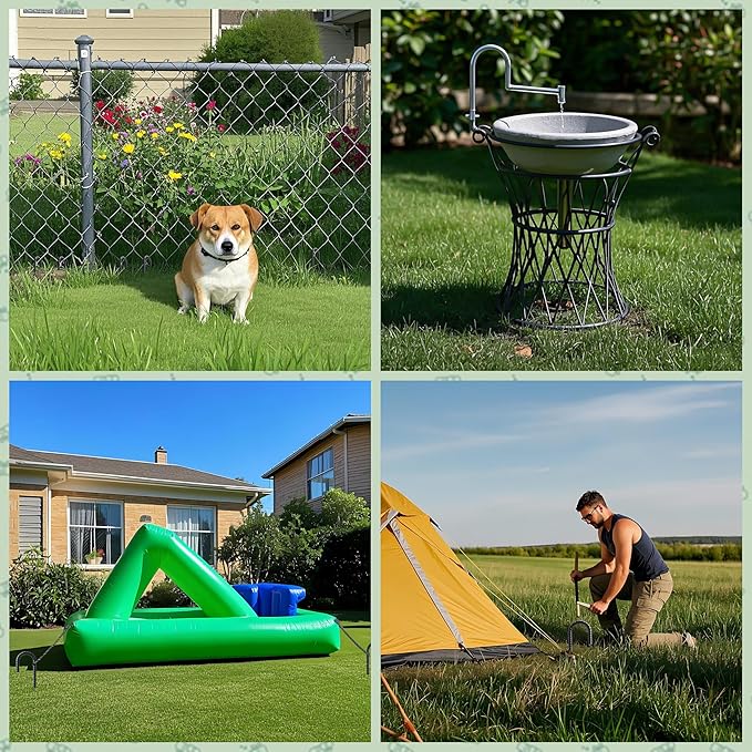 - Wide Applications--These heavy duty stakes for high wind work great for securing tents, trampolines, soccer goals, patio furniture in any weather and also perfect for pinning down weed fabric on tough soil or keeping outdoor decorations from blowing away
