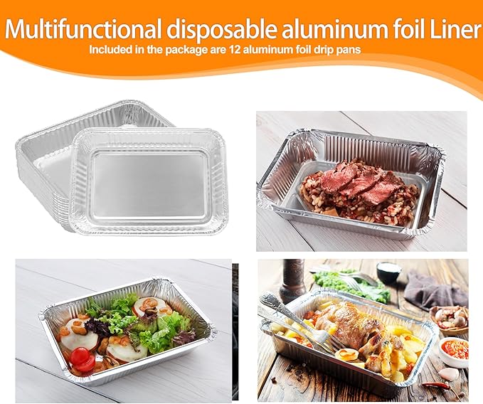- Convenient Aluminum Foil Liners: Included in the package are 12 aluminum foil drip pans, providing added convenience. Insert the aluminum grease tray liner into the catch pan before use, eliminating the need for frequent replacements or cleaning. Enjoy hassle-free grilling with these durable liners