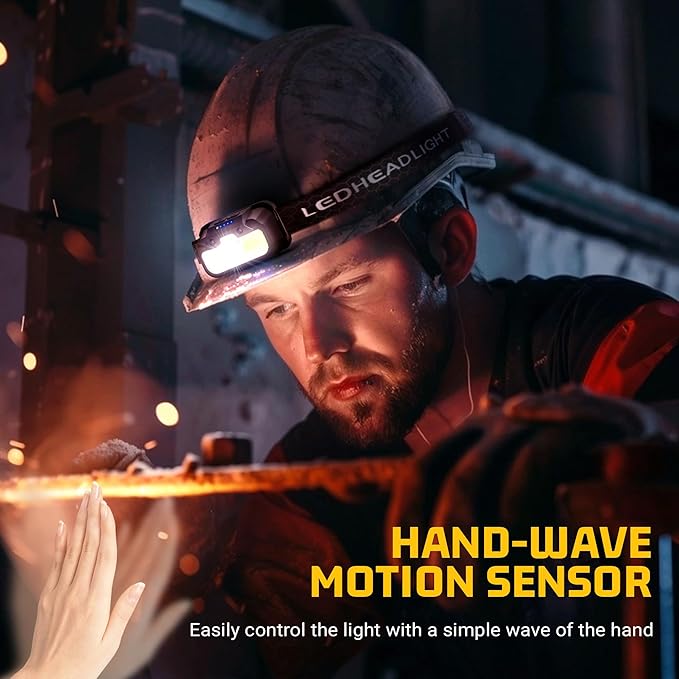 - 【Hand-wave Motion Sensor】Our headlights for forehead are fitted with the latest motion sensor technology that enables users to easily control the light with a simple wave of the hand, making it a convenient tool for your everyday life and work, and avoiding soiling the rechargeable headlamp when your hands are dirty.