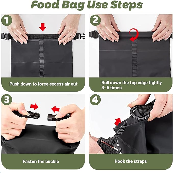 - 【Easy to Use】Put a rock some dirt into the rock bag, tie off the rope and easily toss the bear sack over a branch (The height that the bear can't touch). Then our 2-to-1 pulley system makes it as easy as possible to raise your bear bag. The ropes and clips act like a pulley - meaning you only need half the pulling force to raise your food bags