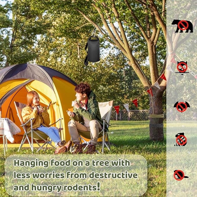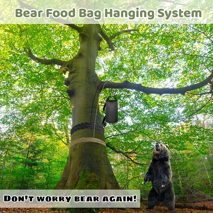 - 【Safety Design】 Hanging food on a tree with less worries from destructive and hungry rodents. our bear bag hanging kit allows you to enjoy your sleep or hiking, without worrying that your food and important equipment will get destroyed by bears, wolves, mountain lions, raccoons and other wild animals