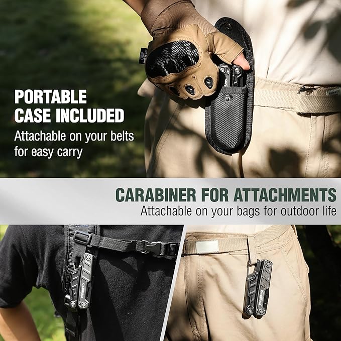 - Portable Sheath and Pocket Clip: When going outside for work, camping, or hiking, simply grab the pocket multitool and place it in the nylon sheath, which can be attached to your belt or bag. Alternatively, you can easily clip the multitool to your pocket