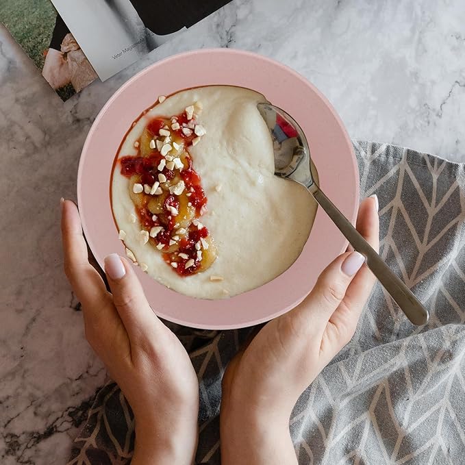 - 🌾【More Thick & Large Capacity】The wheat straw bowls are designed with thicker and smooth round edges which gives you a good touch and prevent deformation.Our wheat straw bowls set has ideal shape and antiskid stripe which avoid spilling your food. Additionally, it is perfect for cereal, salad, fruit, rice, noodle and so on.