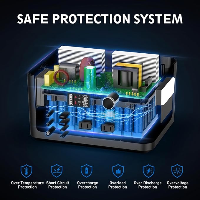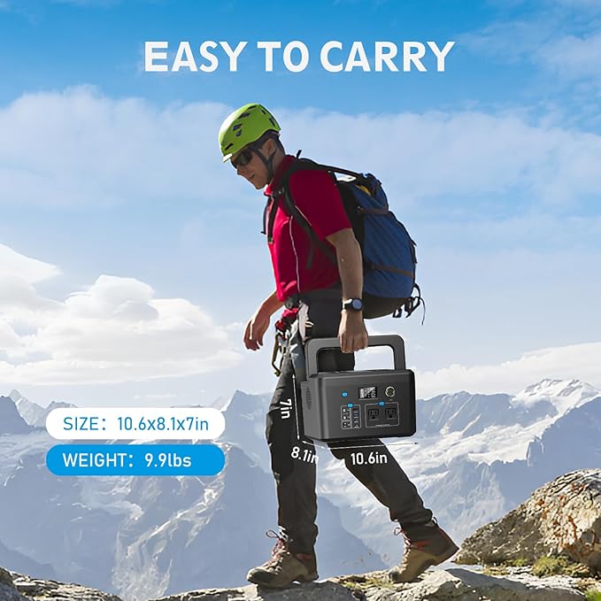 - PURE SINE WAVE 110V AC OUTLET: It can power your outdoor electronics without worry. It's better than modified sine wave, the pure sine wave(110V 600W) power will protect your sensitive devices. Besides, our R600 portable power bank with flexible handle, easy to carry to wherever you go. It is perfect for RV Trip, camping, hunting, blackout, indoors/outdoors emergency