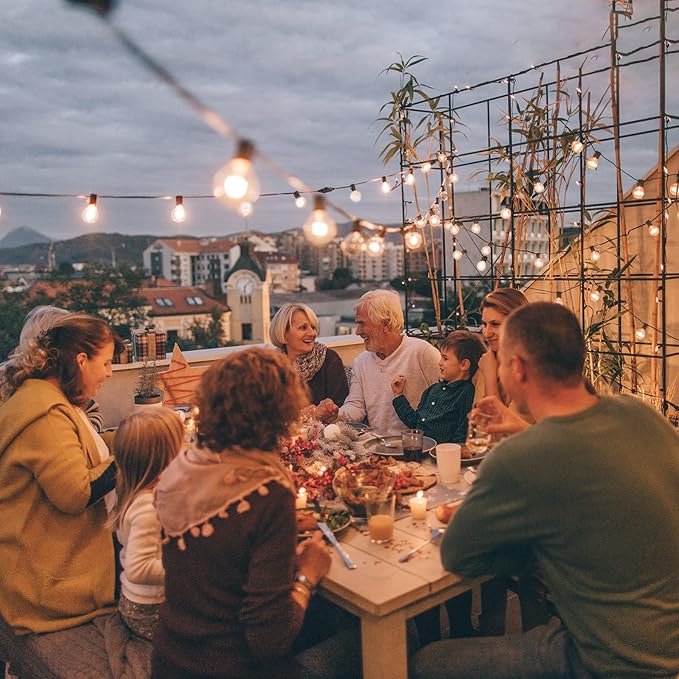 - Connectable and Easy Installation: Each 50 FT string has end-to-end design connections, can be connected up to 19 strands, no need to worry about the length limits. Our bulb spacing is approx. 1.97 ft, closer spacing lights up areas better, first bulb to the plug is also 1.97 ft. Light weight, easy to carry and store