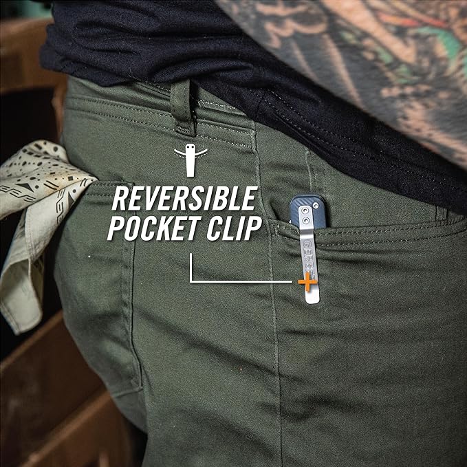 - QUALITY CRAFTED: Features a stainless steel, plain edge blade, textured grip, liner lock, reversible thumb stud, and reversible pocket clip