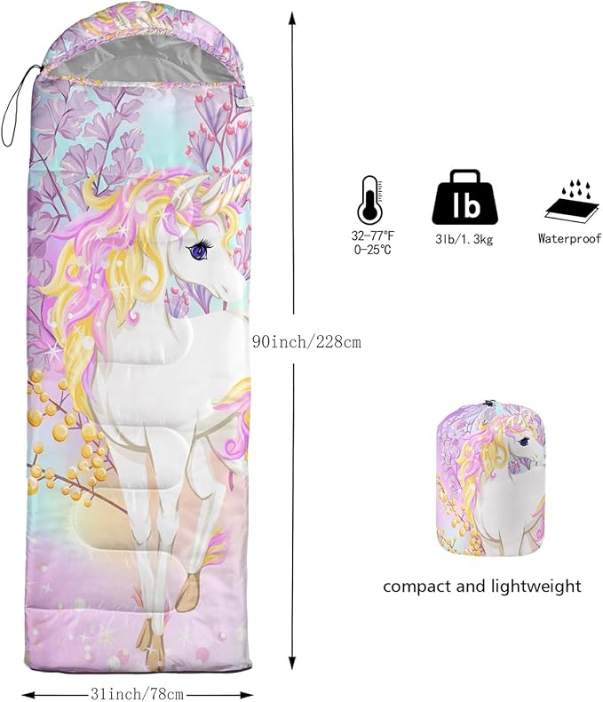 - ๐ใFashion DesignใSIZE - 31 by 90 inches (W x D). Our sleeping bag can be used in 3 seasons with a design temperature of 32โ-77โ(0โ-25โ). These bags also have a weather resistant waterproof design to keep you warm and prevent you from any dampness.