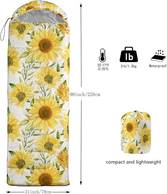 - ๐ใFashion DesignใSIZE - 31 by 90 inches (W x D). Our sleeping bag can be used in 3 seasons with a design temperature of 32โ-77โ(0โ-25โ). These bags also have a weather resistant waterproof design to keep you warm and prevent you from any dampness.