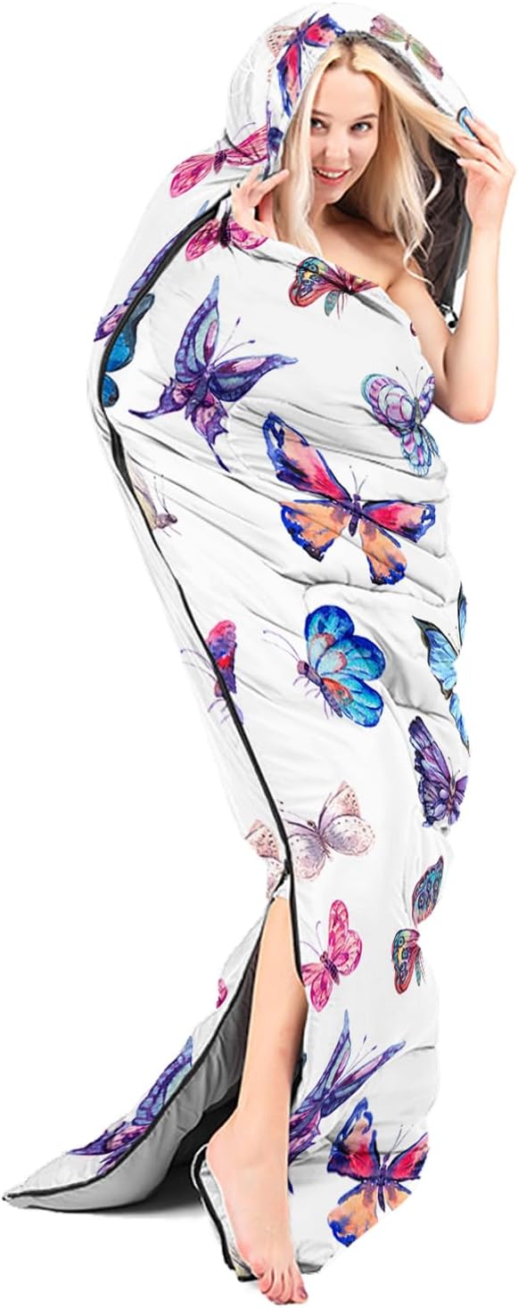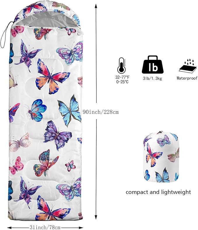 - ๐ใFashion DesignใSIZE - 31 by 90 inches (W x D). Our sleeping bag can be used in 3 seasons with a design temperature of 32โ-77โ(0โ-25โ). These bags also have a weather resistant waterproof design to keep you warm and prevent you from any dampness.