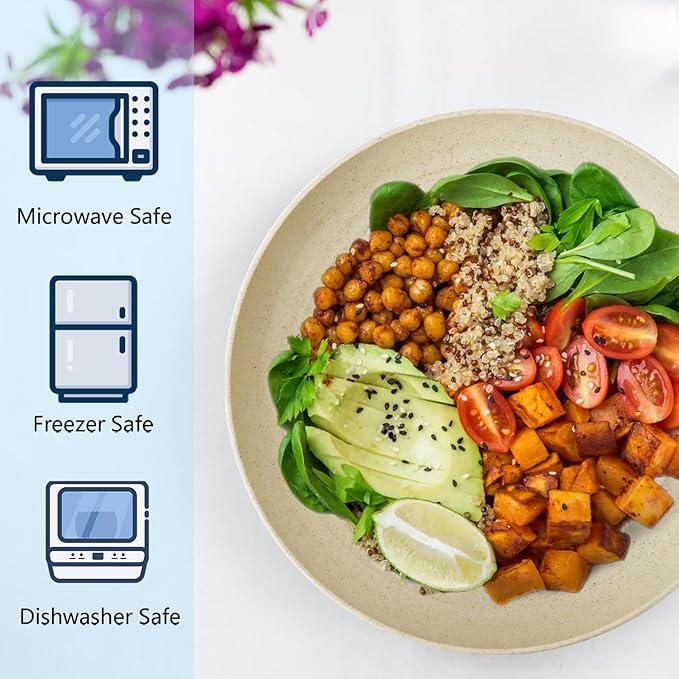 - ๐๐ก๐๐๐ญ ๐๐ญ๐ซ๐๐ฐ ๐๐๐ญ๐๐ซ๐ข๐๐ฅ: Each 10 inch plastic plate is constructed with organic wheat straw fiber and food-grade PP, 100% BPA free, non-toxic, odorless.