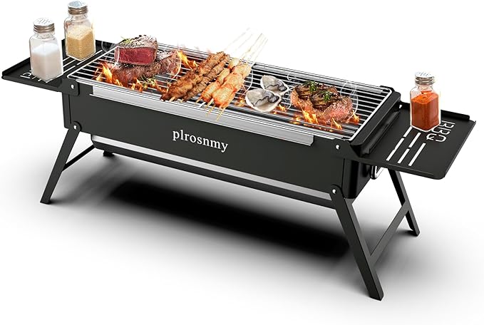 - ULTRA-QUALITY: plrosnmy portable charcoal grill is made of high-quality stainless steel smooth surface without worrying about cutting your hands, sturdy and durable, the grill surface is made of HEAT-RESISTANT EPOXY, easy to clean with a wipe of a wet paper towel
